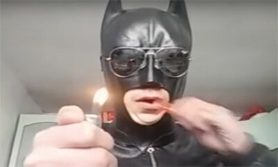 En costume de Batman, ce jeune asiatique veut croquer un briquet qui contient du gaz pour voir les conséquences. Après l'avoir croqué, le briquet lui explose dans la bouche et le feu se propage jusqu'à son visage à cause...