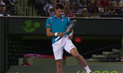 Ce vendredi 25 mars 2016, durant le tournoi de tennis de Miami, aux États-Unis, Novak Djokovic a fait le show après avoir loupé son service, retourné par son adversaire, Kyle Edmund. Alors que la balle jaune est lancée t...