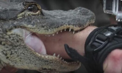 Oui et vous savez pourquoi ? Pour prouver la dangerosité de l'animal ! Par contre, lui vient de nous prouver sa connerie. C'est comme si je mettais ma main dans le feu pour vous prouver le danger des flammes. Oui, ce mec...
