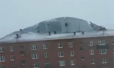 Le lundi 21 mars 2016 en Russie, le vent soufflait vent et une puissante rafale a complétement arraché le toit d'un immeuble de 4 étages au cours d'une tempête qui frappait la ville de Doudinka. Malgré ses images impress...