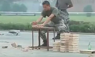 Une vidéo provenant de l'armée chinoise durant une représentation au public pour montrer de quoi sont capable de subir ces hommes durant leurs entraînements. Coup de bâton, de massue, et même de parpaing sur le poignet s...