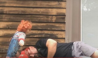 Les parents du jour sont ces américains qui font faire croire à leur fille que le papa est la victime de la poupée tueuse Chucky. Allongé sur le sol avec du faux sang sur la tête e un marteau a ses côtés, il tient la pou...