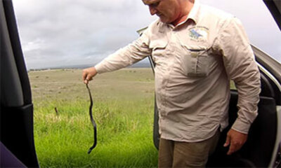 Alors qu'il roule en direction de Middleton en Australie, le passager de cette jeep sent quelque chose lui frotter le bras gauche. C'est alors qu'il remarque qu'il s'agit d'un serpent et surtout d'un Ventre rouge. A savo...