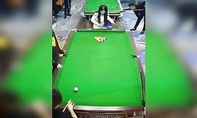 Dans une salle de billard, une femme se fait assaillir par les boules…