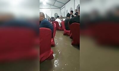 Le 22 avril, de fortes pluies ont frappé la ville de Cangzhou, en Chine. Les invités d'un mariage ont alors dû faire un repas dans une véritable piscine d'eau boueuse.