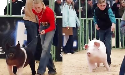 Le dressage de cochon est un sujet très sérieux. Les dresseurs sont pénalisés s’ils regardent leur cochon ou baissent les yeux, d’où leur regard psychopathe.