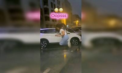 Après une grosse averse, une fille n'a qu'une idée en tête : sauter dans une grosse flaque pour rigoler. Mauvaise pioche. Elle glisse direct sur le sol mouillé et s'étale complètement dans la flaque. Résultat : une chute...