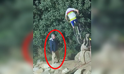 Au mauvais endroit, au mauvais moment, un homme réussi une première fois à éviter de se faire écraser par un vélo, mais l'engin à deux roues n'a pas dit son dernier mot.