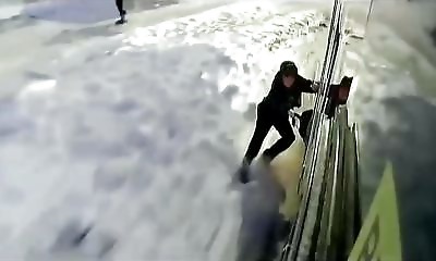 Au péril de sa vie, ce passager de bus tente de récupérer son sac coincé dans les portes, fermé trop rapidement par le chauffeur. Va-t-il y arriver sans passer sous la roue arrière ?