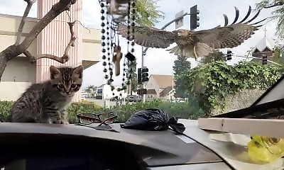 Sur le parking d'un McDonald's de Los Angeles, un incident surprenant s'est produit. Un homme, assis dans sa voiture sur le parking, avait un chaton avec lui. Soudainement, un faucon a attaqué, tentant de capturer le cha...