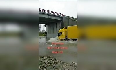 A Madrid, suite à de fortes inondations, un transporteur de la poste locale a tenté de passer ce qui lui semblait peut-être être une simple flaque.