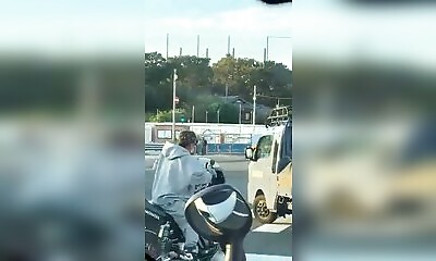 Un motard fait son show au feu rouge, pensant impressionner tout le monde avec sa moto. Sauf qu'il est tombé sur le mauvais gars. Un automobiliste énervé sort de sa caisse et lui passe un sacré savon. Le petit dur à cuir...