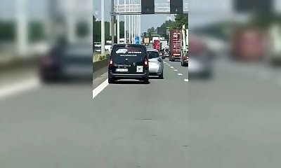 Sur une autoroute belge, l'ambiance est tendue. Une Mercedes est pressée et veut doubler coûte que coûte, mais la voiture grise devant fait de la résistance et refuse de se rabattre. Entre l'asphalte belge un peu spécial...