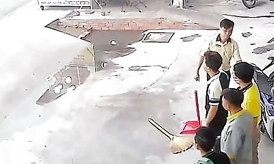 En Chine, dans un restaurant, le personnel et les clients unissent leurs efforts pour retenir une tente qui menace d'être emportée par de violents vents lors d'un orage. Malheureusement, malgré leurs tentatives, les rafa...