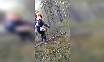 Cet homme vient certainement de s’éviter le pire… En effet, l’arbuste qu’il vient de couper lui tombe dessus malheureusement. Mais dans une ultime tentative de s’éviter le pire, il utilise sa débroussailleuse pour se tir...