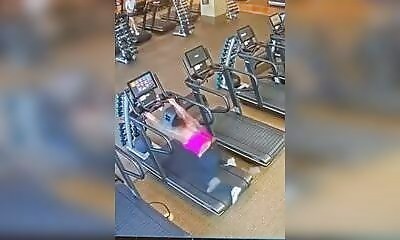 Tomber d'un tapis de course, cela peut arriver à n'importe quel novice qui met l'appareil un peu trop fort. Mais nous avons ici une femme têtue qui en rajoute en voulant à tout prix de remonter dessus, jusqu'à ce que la ...