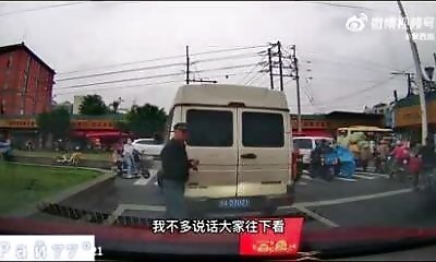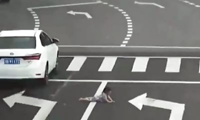 Scène totalement loufoque à un feu tricolore en Chine. Alors que la voiture est à l'arrêt et attend que le feu repasse au vert pour repartir, un enfant sur la banquette arrière passe sa tête par dehors. Malheureusement, ...