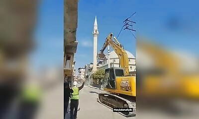 Je n'ai pas trouvé de source fiable par rapport à cette vidéo, mais elle nous montre apparemment la destruction du minaret d'une mosquée, après sa fragilisation par les tremblements de terre successifs. Tout ne se passe ...