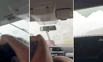 Dans cette vidéo, nous pouvons voir un groupe de personnes à bord d'une voiture qui traversent une tempête de grêle. Alors qu'ils roulaient sur la route, des grêlons de plus en plus gros ont commencé à tomber sur la voit...