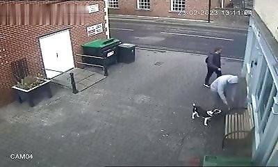 A Bridport au Royaume-Uni, un homme attache son chien à un banc, sans se douter de ce qu'il va se passer par la suite.