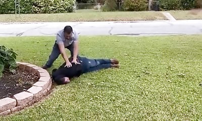 Alors que cet homme se dépêche d'aller rejoindre un transporteur pour récupérer un colis dans la rue, il rencontre un petit contre-temps...
