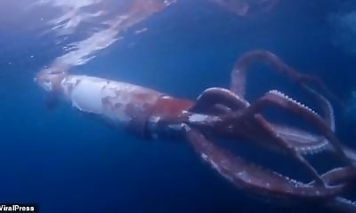 Un couple est tombé sur un calmar géant alors qu'il faisait de la plongée sous-marine dans les eaux de l'ouest du Japon. Le calmar mesurait plus de 2,5 mètres de long et les plongeurs ont pu s'en approcher de très près. ...