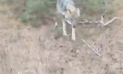 Alors qu'il marchait dans la forêt du Hoge Veluwe National Park aux Pays-Bas, un cycliste a aperçu devant lui un loup traversant la piste cyclable. L'animal s'est alors réfugié dans les bosquets à gauche de la piste et e...