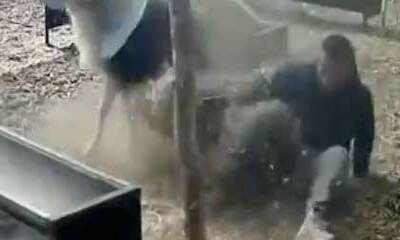 Un homme en voulant échapper a 4 Rottweiler a chuté au sol. Dans cette vidéo, un homme essaie d'enfermer ses 4 chiots dans un enclos. Pour cela, il tente de les distraire, mais les chiots sont vifs que lui. Il retente l'...