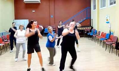 Dans cette vidéo fun, une femme participe à un cours de zumba mais rencontre des difficultés pour coordonner ses mouvements avec ceux des autres danseuses. Comme le montre les images, madame ne se déplace pas en rythme e...