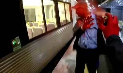 Incroyable vidéo d'un homme très courageux risquant sa vie pour sauver un chien. L'animal était coincé dans les rails et l'homme a réussi à le dégager juste avant le passage d'un train à grande vitesse.