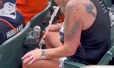 Tata Jeannine s'est rendue dans un match de football américain et a consommé une bière très bon marché. Mais le mélange hot dog et bibine semble l’avoir brassé et Jeannine s'est mise à vomir dans les gradins. Bref, sympa...