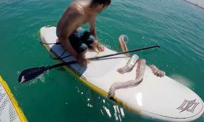 Un calamar énorme attaque un paddle. Ce dernier qui profitait agréablement d'une sortie en Californie a été attaqué par une pieuvre. L'homme a soudainement vu les tentacules de la pieuvre s'enrouler autour de sa planche....