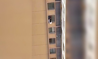 Dans la province du Guangdong en Chine, une femme en mini-jupe blanche a été filmée suspendue à la façade d'un immeuble au 10e étage, à 30 mètres du sol. Surprise par le retour inopiné de l'épouse de son amant, elle s'es...