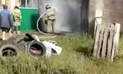 Un pompier qui intervient pour un feu dans un garage ne s'attendait pas à un tel accident. Le feu a bien attaqué la structure du vieux garage et fragilisé le toit. Alors que l'homme du feu s'approche du garage, un morcea...