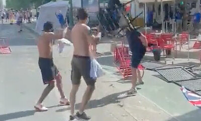 Avant un match de football, les hooligans des deux équipes se sont affrontés dans un centre-ville. C'est alors qu'un des supporters qui se montre agressif va venir se manger en l'espace de 10 secondes une tasse à café et...