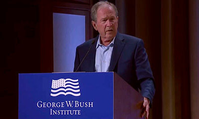 Ce mercredi 18 mai 2022 à Dallas, au Texas, l'ancien président américain George W. Bush a fait un lapsus durant un discours contre le système politique russe : Il déclare : "Le résultat est une absence de freins et de co...