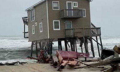 Ce mardi 10 mai 2022 à Cape Hatteras National Seashore, en Caroline du Nord, deux maisons heureusement inoccupées sur pilotis se sont faits emportées dans l'océan Atlantique. Pour des raisons de sécurité, la plage a été ...