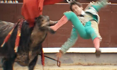 Le torero Mexicain de 22 ans Arturo Gilio Quintero, originaire de Torreon au Mexique, a été encorné ce lundi 9 mai 2022 par un taureau avec un trou 25 centimètres à la jambe lors de la plus grande féria du monde (San Isi...