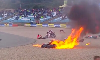 Le dimanche 24 avril 2022, la pluie a provoqué une grosse chute collective sur le circuit de Portimao durant le Grand Prix Moto2 du Portugal. Plusieurs motos se sont télescopés alors que les pilotes se relevaient en essa...