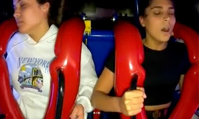 Deux jeunes femmes ont décidé de faire l'attraction à sensation forte, le SlingShot. Mais les deux femmes vont carrément tomber dans les pommes au moment du décollage pendant que la boule les envoient en l'air à 70 mètre...