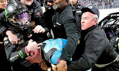 Après un accrochage à l’arrivée de la course de NASCAR Xfinity sur le Martinsville Speedway, une bagarre a éclaté dans les stands entre Ty Gibbs et Sam Mayer. Comme le montre ces images, le pilote Ty Gibbs a été provoqué...