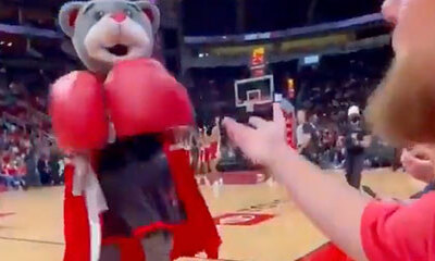 Le boxeur américain Jake Paul a fait le spectacle avant un match de NBA entre les Houston Rockets et les Minnesota Timberwolves. Celui-ci a mis KO la mascotte des Rockets qui est venu le provoquer avec des gants de boxe....
