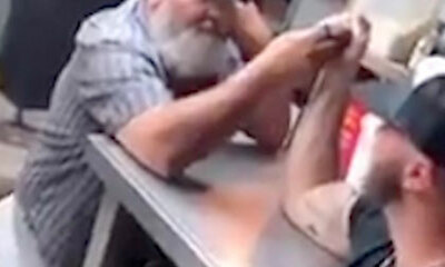 Un jeune homme qui pratique la musculation défi son père au bras de fer. Le premier est adepte de musculation, le second a eu un travail physique toute sa vie. Forcément, malgré le fait de soulever des haltères ne suffit...