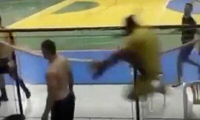 Durant une compétition de football en salle, un spectateur pénètre le terrain pour venir frapper un des joueurs. Il va alors tenter de prendre la fuite mais va se faire bloquer les sorties et ensuite venir se faire botte...
