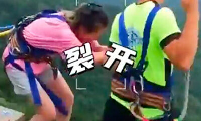 En Chine, les employés d’une attraction à sensation forte avec des ponts suspendu. Ils ont pour habitude de s’amuser avec les clients qui ont choisi de payer pour la traversée au-dessus du vide en marchant sur un pont av...