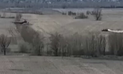 Les forces armées ukrainiennes affirment avoir abattu un hélicoptère russe près avoir été touché par une roquette. Les services de communication des armées ukrainienne diffusent des images des combats montrant un hélicop...
