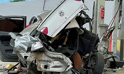 Une vidéo montre le moment où le réservoir d'essence d'une berline Volkswagen explose dans une station-service dans le nord-est du Brésil ce mercredi 16 mars 2022. Les autorités ont déclaré que le réservoir de carburant ...