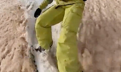 Les images incroyables de snowboarders surfant de la neige ocre après le passage d’un nuage de poussière de sable venu du Sahara. Nous avons tous subi le passage de ce fameux nuage de poussière qui a coloré le ciel en or...