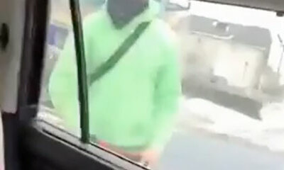Dans la région de York, non loin de Toronto au Canada, un conducteur au visage masqué coupe la route à un SUV portant un drapeau ukrainien. Le conducteur descende de son véhicule et attaque le SUV avec un démonte-pneu po...