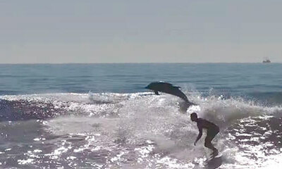 Le lundi 24 janvier 2022, des surfeurs américains ont été accompagné par un groupe de dauphins bondissant hors de l'eau à leurs cotés. Ces images ont été filmées sur le spot de surf de Rincon Point à Carpinteria, en Cali...